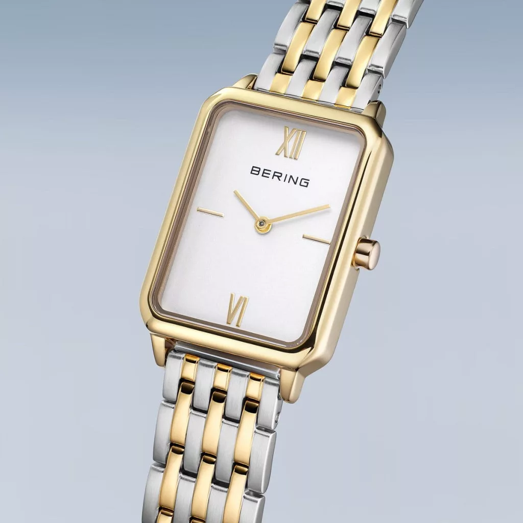 A BERING Classic kollekció ezen modellje az arany és az ezüst tónusok harmonikus találkozása. Ez a kétszínű (bicolor) karóra a téglalap alakú formavilágot és a dán minimalizmust ötvözi, így teremtve meg a tökéletes egyensúlyt a modern stílus és az időtlen luxus között.