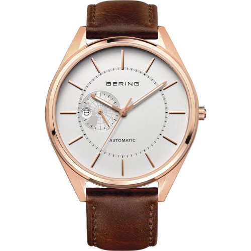 Mozgástechnika, egyedi dán design és egy darab kortárs történelem. Kizárólag az AUTOMATIKUS GYŰJTEMÉNYBEN a BERING együtt dolgozott Miyotával a VITUS 1728 precíziós időmérő kifejlesztésén, amelyet folyamatosan és megbízhatóan töltenek a viselője karjára. Az óra számlapja figyelemfelkeltő funkció, amely felfedi az óra mozgásának lenyűgöző bonyolultságát és részleteit. Tiszta vonalaival és elegáns megjelenésével az óra minden alkalomhoz elegáns kiegészítő. Az óra finom gyártású borjúbőr szíjjal és fényes rózsaarany színű rozsdamentes acél tokkal rendelkezik, tiszta, kiváló minőségű, orvosi minőségű rozsdamentes acélból (316L). A hozzá illő fehér színű Sunray számlap, modern külsőt kölcsönöz az órának. A kéttónusú, 24 órás idő- és dátumjelző adja az utolsó simítást a kifinomult számlap megjelenésének. A számlapot egy különösen kemény, kristálytiszta és karcálló zafírkristály védi, amelyet egy finom rozsdamentes acél keret keretez. Bering férfi karóra típusa 16243-564