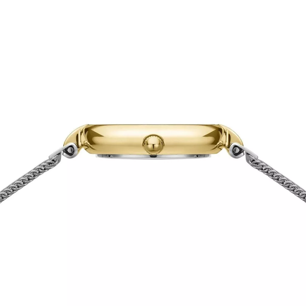 Az óra ezüst színű milánói szíjjal, valamint arany színű részletekkel rendelkezik a tokon és a mutatókon – visszafogott kiegészítője a mindennapi viseletnek és a különleges alkalmaknak. A hozzá illő karkötő két összefonódó gyűrűt tartalmaz: az egyik polírozott rozsdamentes acélból, a másik pedig csillogó kövekkel – a kapcsolat és az örökkévalóság szimbóluma.
