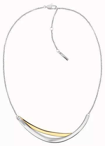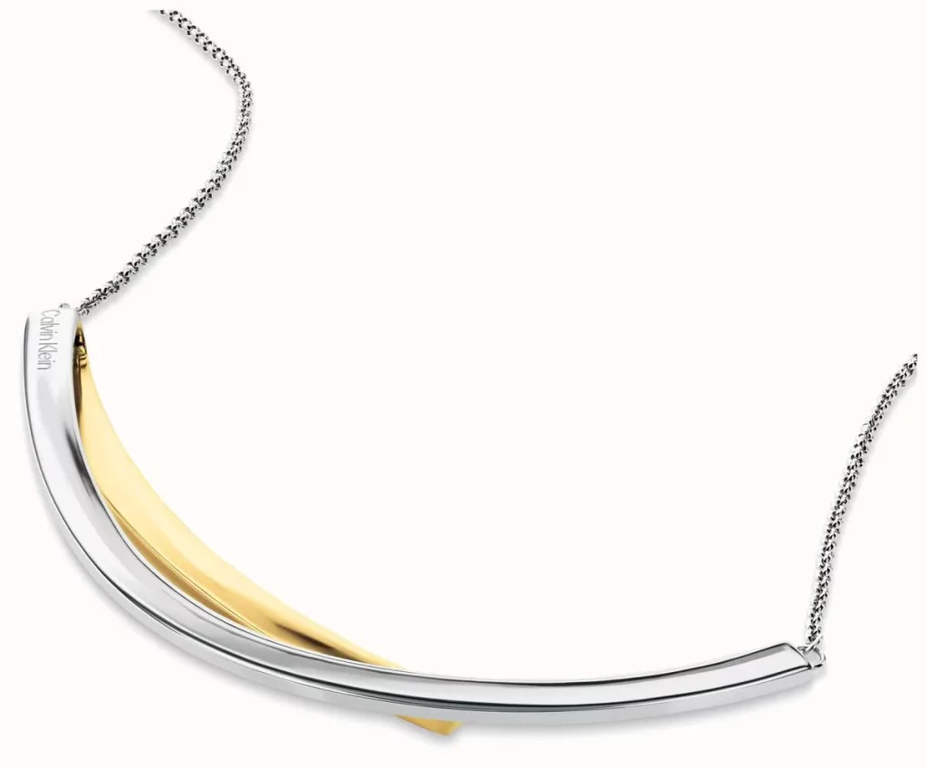 A Calvin Klein Elliptical 35000847 női nyaklánc egy letisztult, mégis karakteres darab, amely a modern minimalizmus és az elegancia tökéletes egyensúlyát képviseli. A nyaklánc finoman bicolor rozsdamentes acélból készült, amely arany és fémes szürke tónusban játszik, így könnyen illeszthető különböző stílusokhoz és ruhatípusokhoz. Ez a kombináció visszafogott luxust sugároz anélkül, hogy túldíszített lenne, ezért tökéletes mindennapi viselethez, de elegáns eseményekhez is.