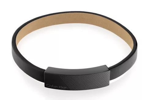 Calvin Klein férfi karkötő típusa 35000416. Modern férfi karkötő a Calvin Klein márkától, sima fekete bőrszíjból készült, a márka logójával díszített és fekete PVD-vel kezelt acél csattal kiegészítve, a karkötő hossza: 19,5 cm, nem hiányozhat róla a márka elnevezése sem, kényeztesd magad luxus ékszerekkel, amelyek csillogást kölcsönöznek öltözékednek.