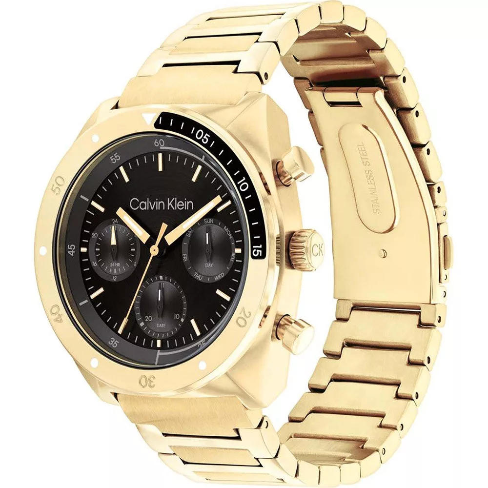 Calvin Klein óra rozsdamentes acélból készült, 42 mm átmérőjű tokkal és rozsdamentes acél szíjjal van felszerelve. A tok belsejében egy Seiko Instruments Inc. szerkezet található, az órán pedig ásványi kristály található.