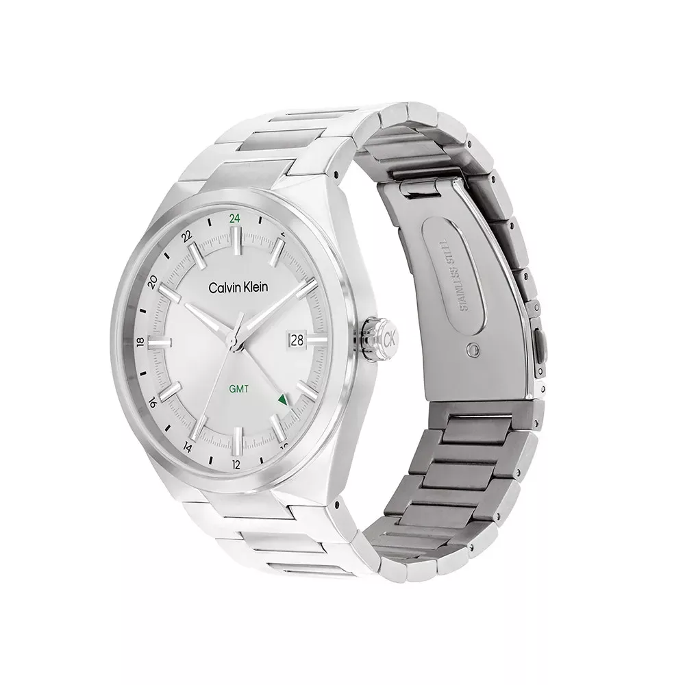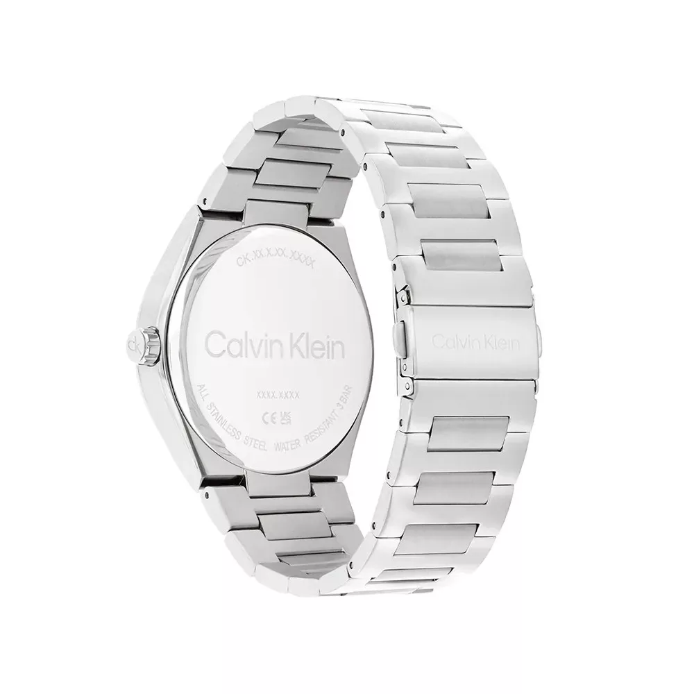 Calvin Klein óra rozsdamentes acélból készült, 44 mm átmérőjű tokkal és fém szíjjal van felszerelve. A tok belsejében egy Ronda szerkezet, az órán pedig egy ásványi kristály található.
