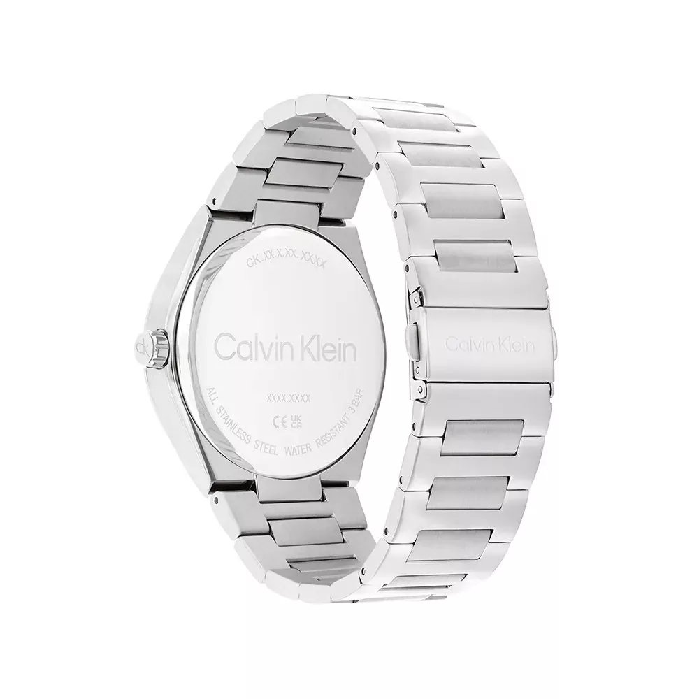 Ennek a Calvin Klein karórának rozsdamentes acélból készült tokja 44 mm átmérőjű, és fém szíjjal van felszerelve. A tok belsejében egy Ronda szerkezet, az órán pedig egy ásványi kristály található.