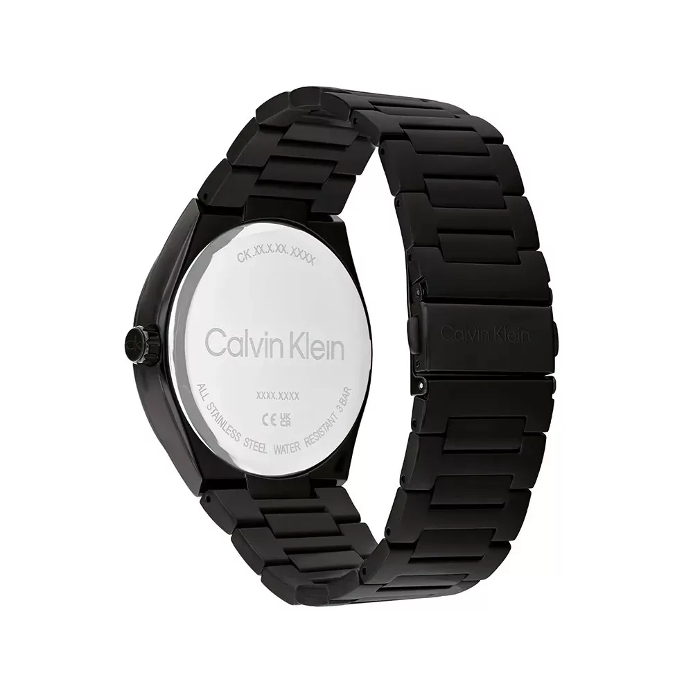 Calvin Klein óra rozsdamentes acélból készült, 44 mm átmérőjű tokkal és fém szíjjal van felszerelve. A tok belsejében egy Ronda szerkezet, az órán pedig egy ásványi kristály található.