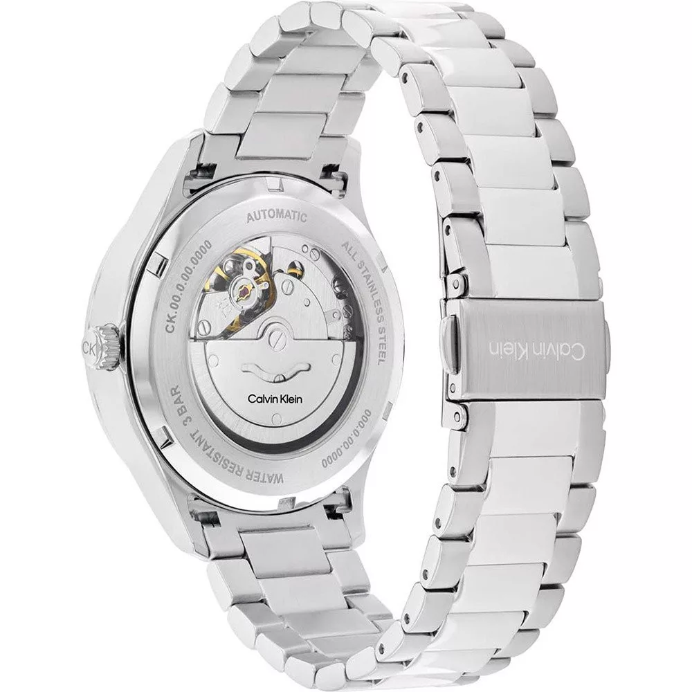 Ez a Calvin Klein óra rozsdamentes acélból készült, 40 mm átmérőjű tokkal és fém szíjjal van felszerelve. A ház belsejében egy Seagull szerkezet található, az órán pedig ásványi kristály található.