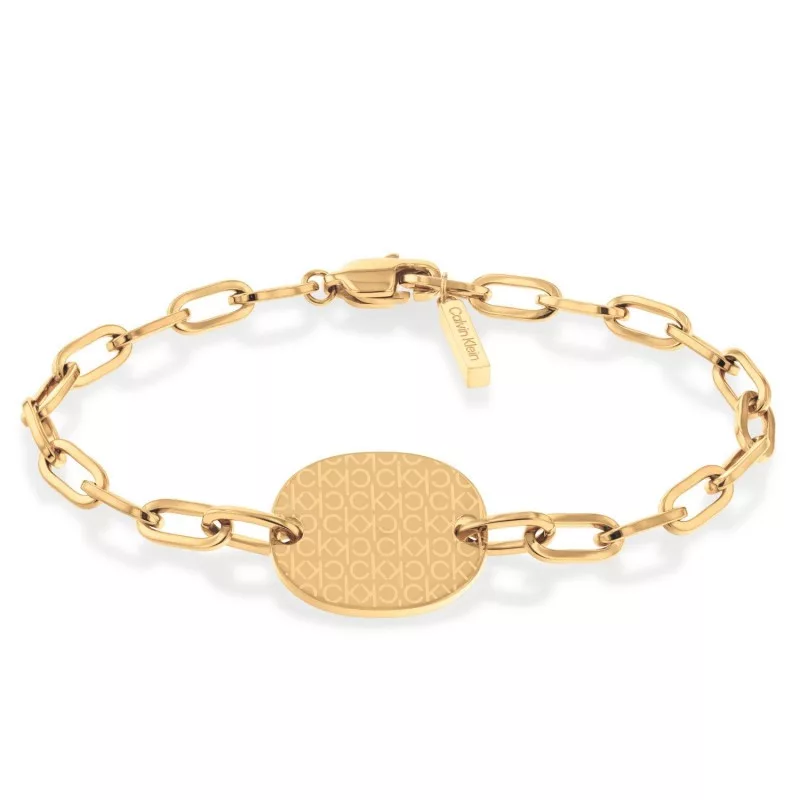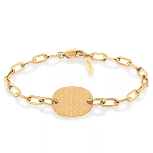A Calvin Klein Iconic For Her egy elegáns ékszerkollekció, amely lenyűgöző felületet mutat be, amely gyönyörűen visszaveri a fényt. Megvásárolhatja a legkiválóbb Calvin Klein ékszereket, például ezt a Calvin Klein aranyszínű karkötőt. A Calvin Klein ékszerek a legjobb minőségű anyagokból készültek. Ez a darab rozsdamentes acélból és arany kivitelből készült.