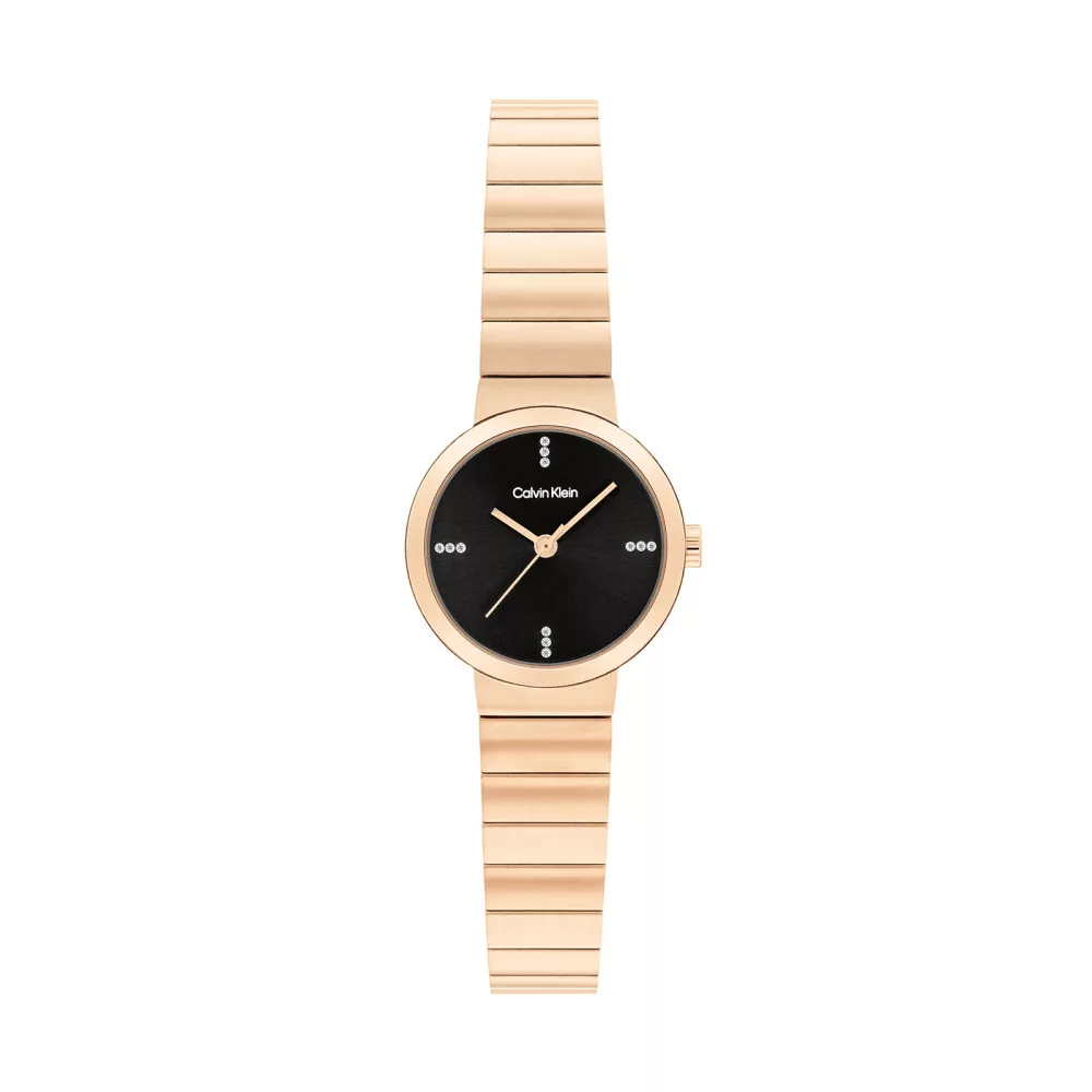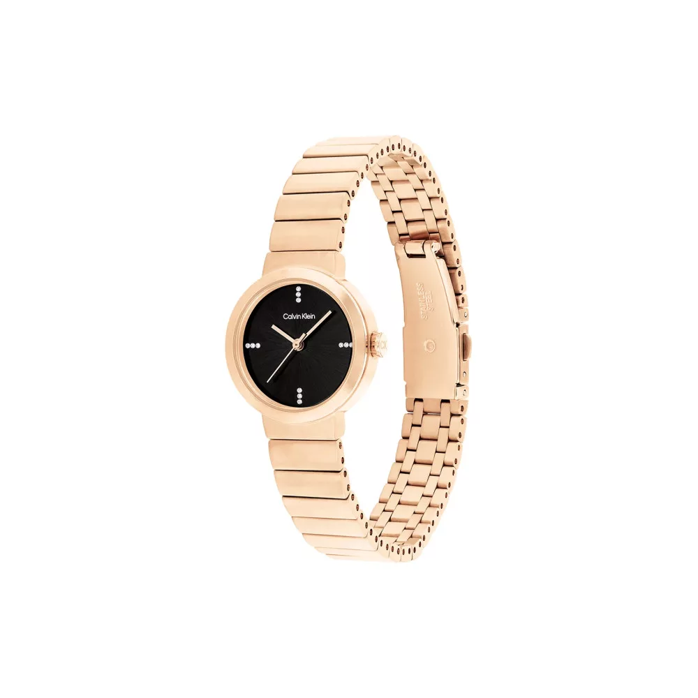 Calvin Klein Precise női Rose Gold rozsdamentes acél kvarc fekete számlap kristályokkal Rose Gold rozsdamentes acél karkötő karóra.