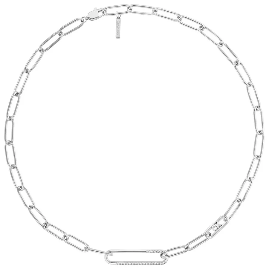 Calvin Klein női nyaklánc 35000536. A Calvin Klein amerikai márka mely,megreformálta a stílus fogalmát, a túldíszítettséget átvették az egyszerű, határozott vonalak, a visszafogottság és az elegancia. Az új minimál irányzat lett a vezető trend a városi üzleti szférában dolgozók között.