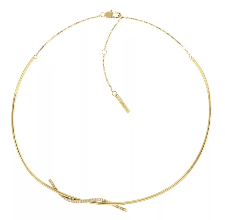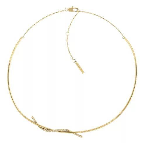 CALVIN KLEIN 35000511 nyaklánc - eredeti nyaklánc aranyozott acélból, amelyet az egyik vezető divatmárka - Calvin Klein tervezett. Az elegáns modell minden ünnepi stílust eleganciát kölcsönöz. A finom nyakláncot csillogó cirkóniák és a Calvin Klein védjegy díszíti. Ez az egyedi modell tökéletes ajándék egy olyan nő számára, aki értékeli az exkluzív ékszereket.
