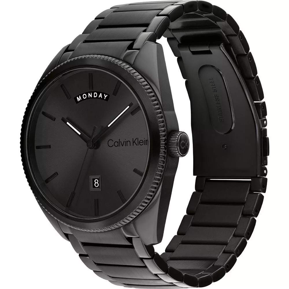 Ez a Calvin Klein óra rozsdamentes acélból készült, 42 mm átmérőjű tokkal és fém szíjjal van felszerelve. A tok belsejében egy Seiko Instruments Inc. szerkezet található, az órán pedig ásványi kristály található.