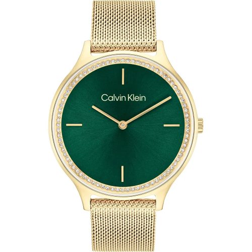 Calvin Klein Timeless női karóra 25100004. Ez a Calvin Klein óra rozsdamentes acélból készült, 38 mm átmérőjű tokkal és fém szíjjal van felszerelve. A tok belsejében egy Miyota szerkezet, az órán pedig egy ásványi kristály található.
