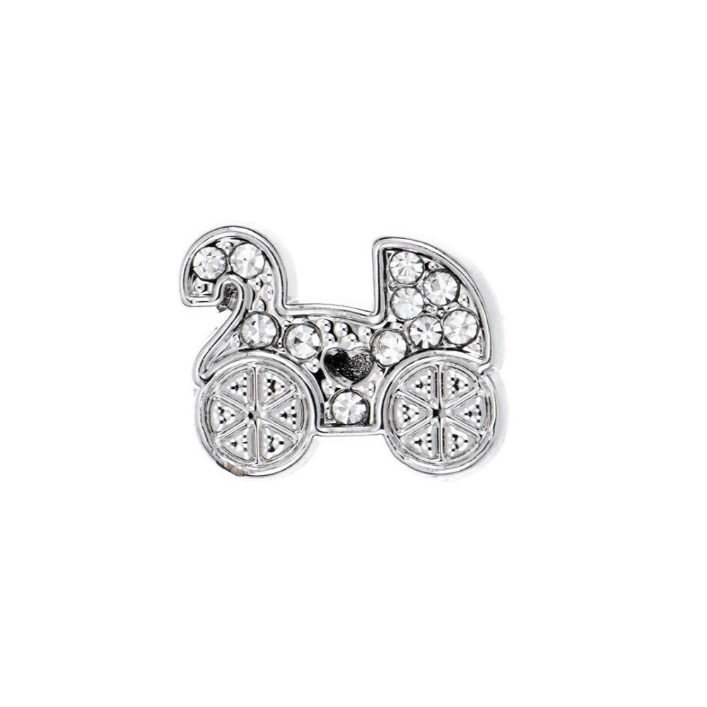 Cango&Rinaldi babakocsi formájú charm a - Charm Kollekcióból - mely nikkel színű fémkellékből készült és fehér színű Swarovski kristályokkal díszített. Viseld büszkén ezt a charmot, ami egyszerre hordozza a személyességet és stílust, valamint mindig emlékeztetni fog a fontos pillanatokra.