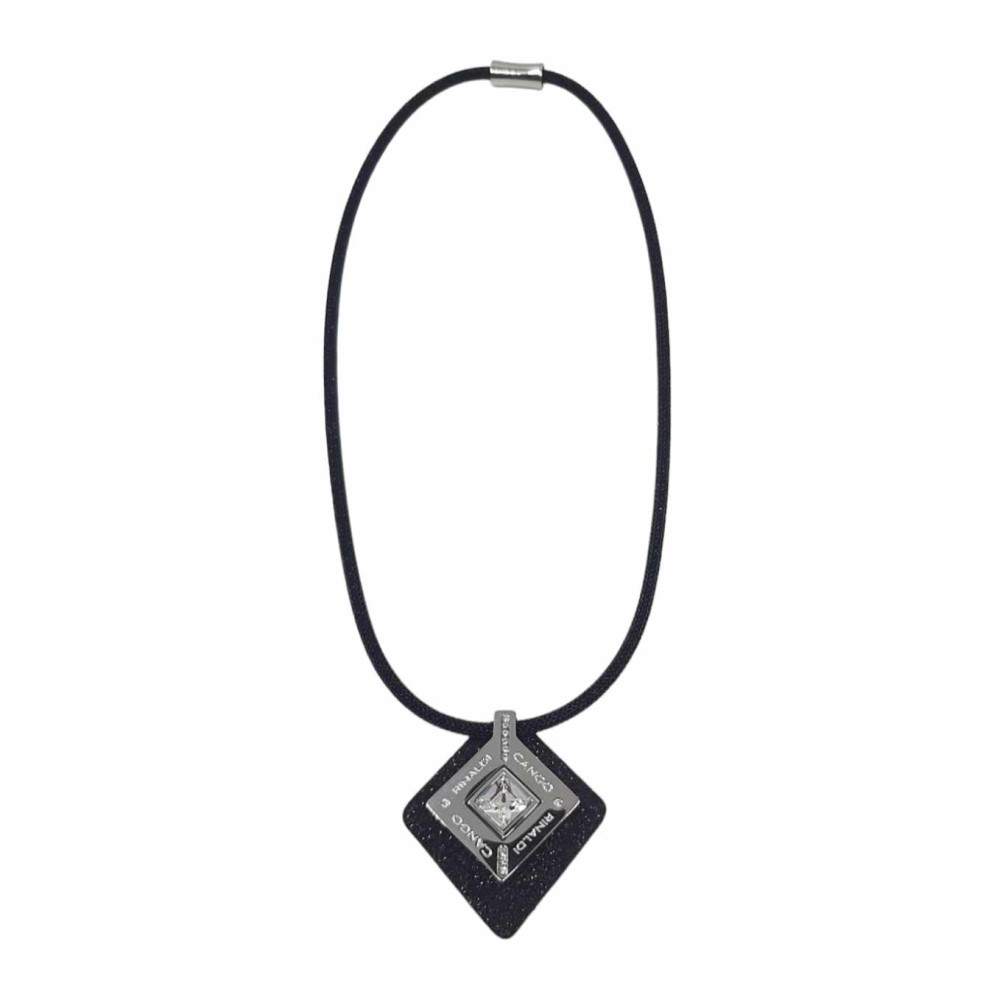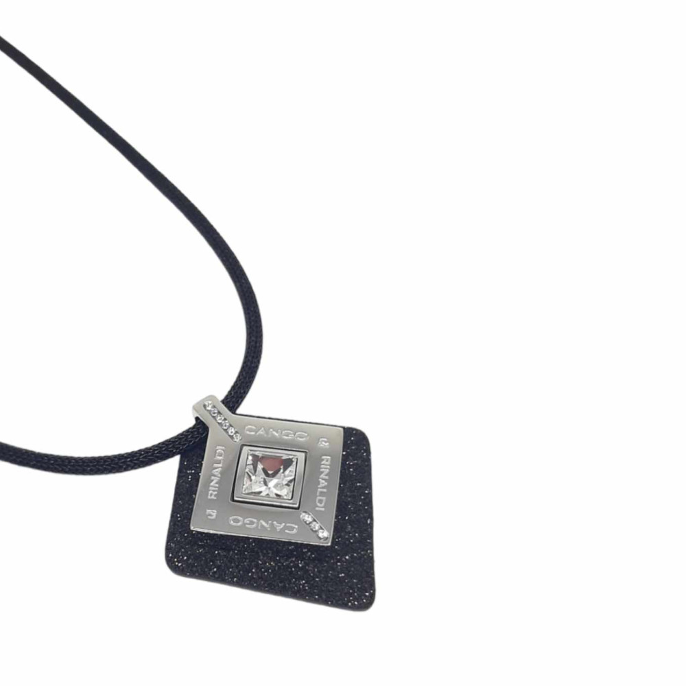Cango&Rinaldi Mosaic női nyaklánc típusa 67406-KC16NY. Cango&Rinaldi - Mozaik kollekciójában található nyaklánc fekete színű huzalon található fekete színű minőségi olasz bőrön, különleges csiszolású fehér színű  kristállyal és Cango&Rinaldi gravírozással ellátott ezüst színű fémkellék található, a gravírozás jelöli a brand eredetiségét és minőségét.