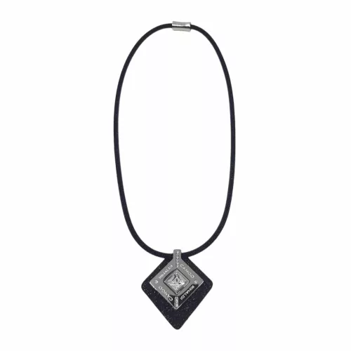 Cango&Rinaldi Mosaic női nyaklánc típusa 67409-KC16NY.  Cango&Rinaldi - Mozaik kollekciójában található nyaklánc fekete színű huzalon található fekete színű minőségi olasz bőrön, különleges csiszolású fehér színű  kristállyal és Cango&Rinaldi gravírozással ellátott ezüst színű fémkellék található, a gravírozás jelöli a brand eredetiségét és minőségét.