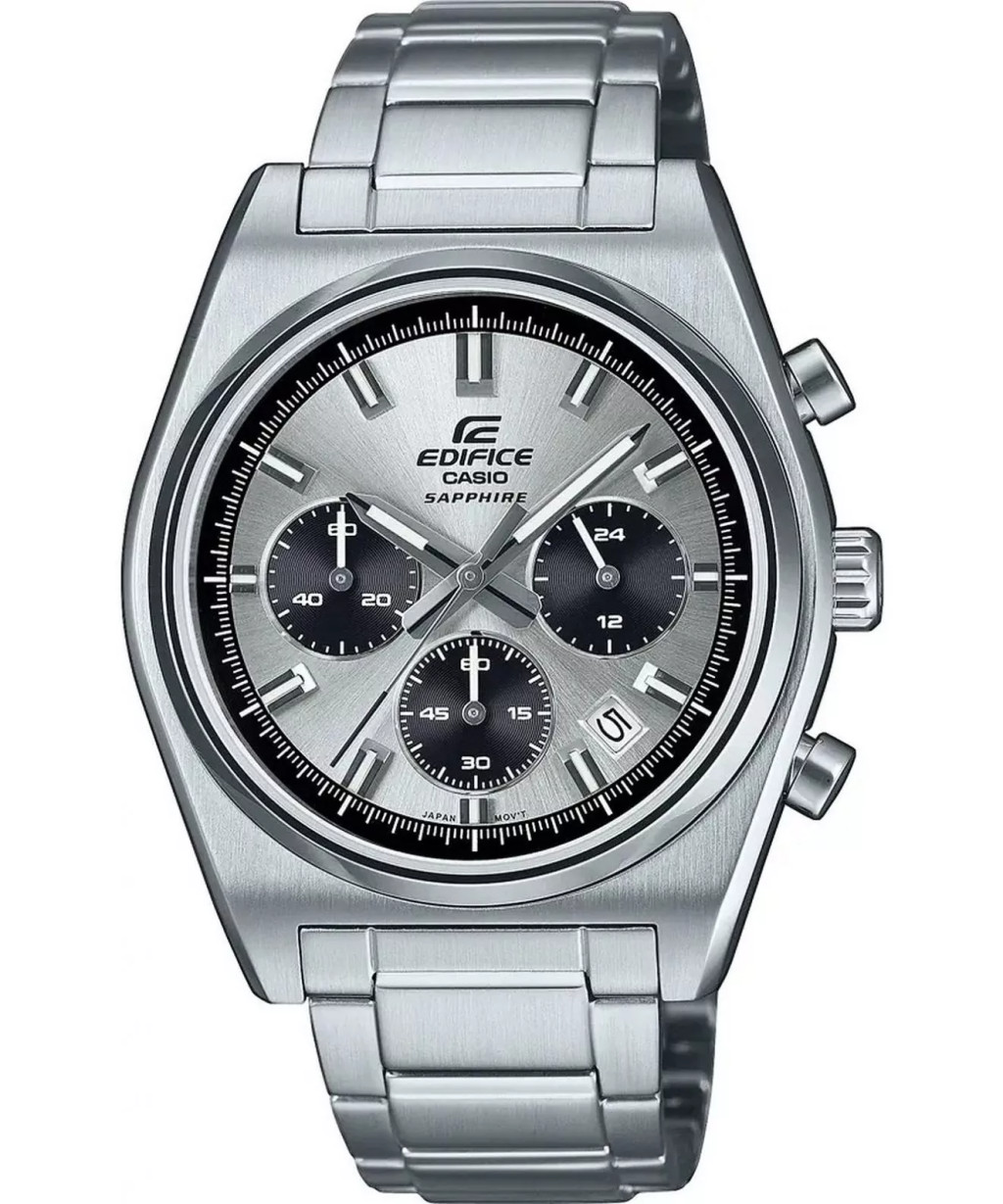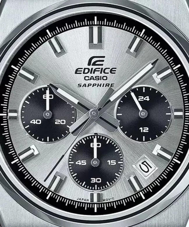 Casio EDIFICE Classic Chronograph EFB-730D-7AVUEF egy elegáns férfi kvarcóra, amelyet azoknak terveztek, akik értékelik a klasszikus stílust és a funkcionalitást. Az ezüstszínű rozsdamentes acél borítás és karperec tökéletesen működik együtt a napsugárral vágott, finom fekete ékezetekkel díszített számlapjával. Az óra kronográf funkciókkal, 24 órás időméréssel és Neobrite háttérvilágítással rendelkezik a minden körülmények közötti könnyű leolvasás érdekében. A japán szerkezet garantálja a pontos működést, a zafírüveg pedig megvédi a számlapot a karcolásoktól.
