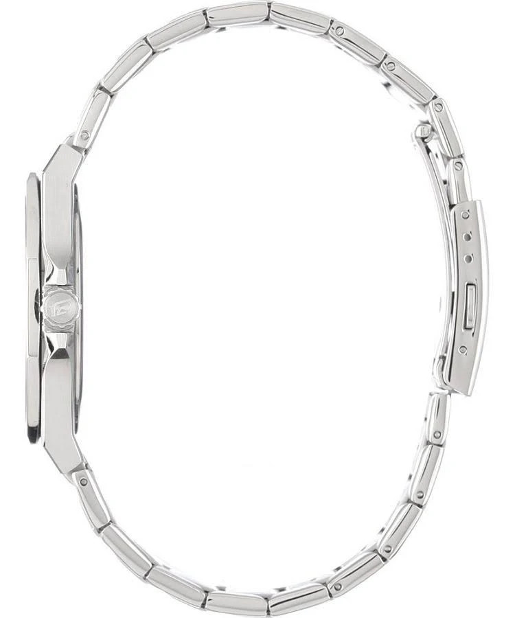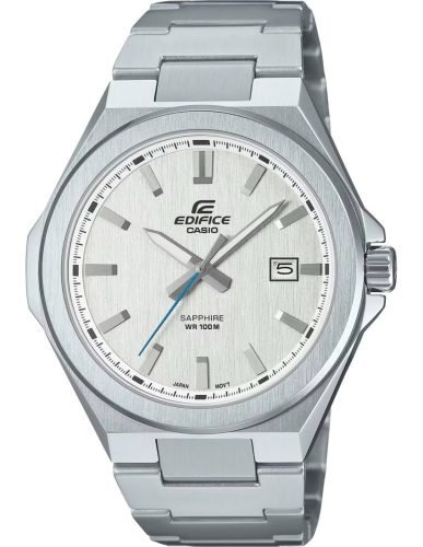 A Casio EFB-108D-7A ezüst színű számlappal, világoskék másodpercmutatóval és 22 mm széles, hajtogatott szemekből álló acél szíjjal készült. Ugyancsak rozsdamentes acél tokja 45 mm-es átmérővel rendelkezik, vastagsága mindössze 8 mm, súlya 133 gramm, szemek kivétele nélkül. A fluoreszkáló bevonattal ellátott óra és percmutatók, valamint a másodperc mutató a központi tengelyre került, míg a 3-as index mellett elhelyezett kis ablakból a pontos dátum olvasható le. A számlapot felülről teljesen karcálló zafírüveg védi az esetleges sérülésektől.  Casio férfi karóra EFB-108D-7AVUEF