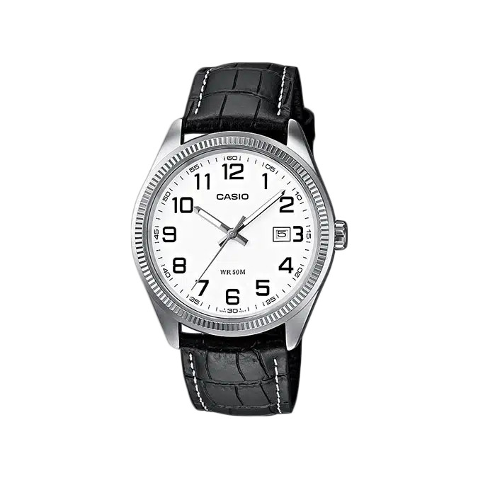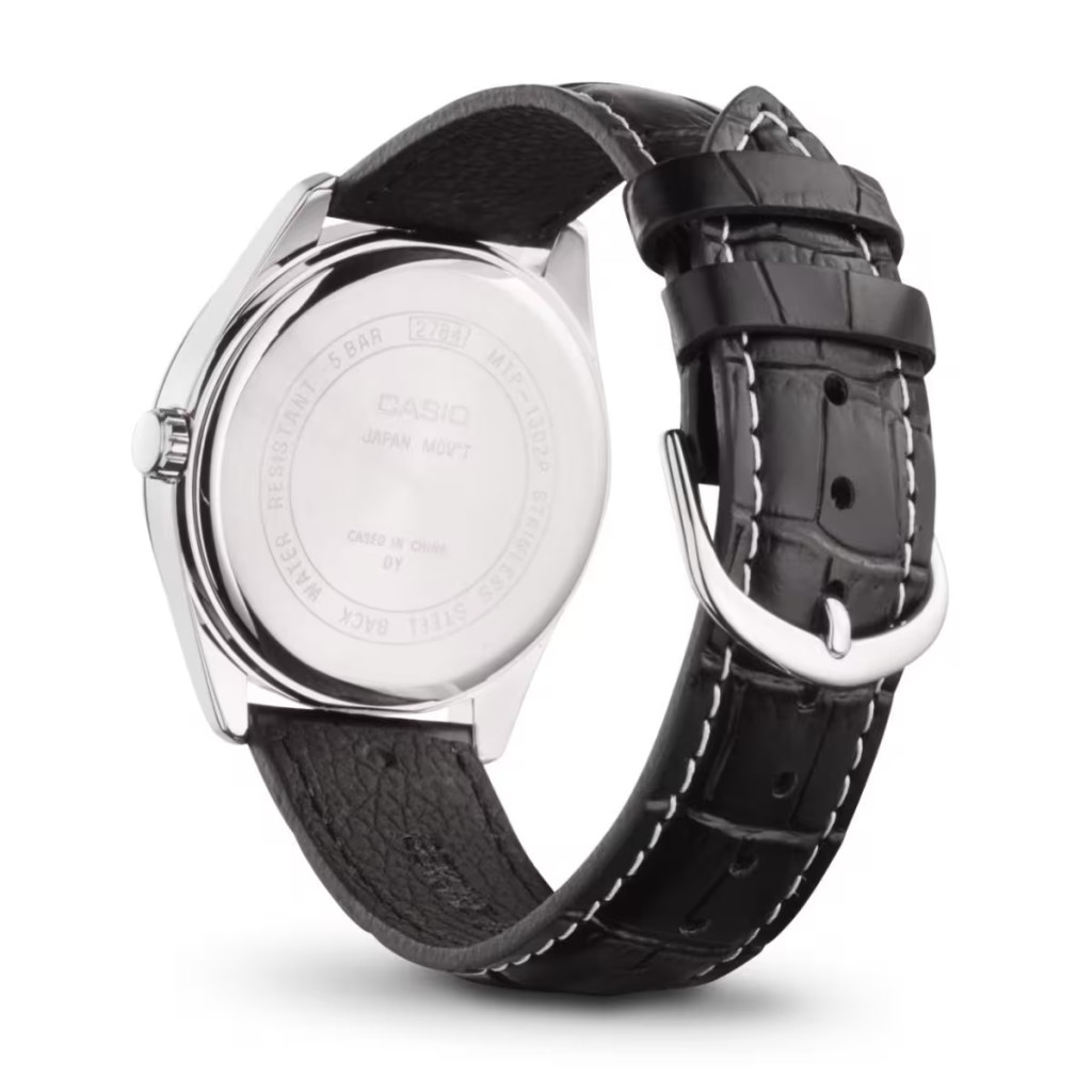 A számlap letisztult fehér, fekete arab számokkal és mutatókkal, amiket foszforeszkáló bevonat tesz olvashatóvá sötétben is – mert egy elegáns óra legyen szép és használható egyaránt. A dátumkijelző a számlapon található, így egyetlen pillantással látod, milyen nap van, és a megbízható japán kvarc szerkezet gondoskodik róla, hogy sose késs. Ez a Casio modell 50 m / 5 ATM vízállósággal bír, ami azt jelenti, hogy bátran viseled kézmosásnál vagy esőben, de úszni vagy fürdeni még nem ajánlott vele – főleg a bőrszíj hosszú élettartama miatt. A kristályüveg erős, a mindennapi apró karcolásoknak jól ellenáll, és szükség esetén cserélhető, ha még évek múlva is szeretnéd frissnek tartani az órát.