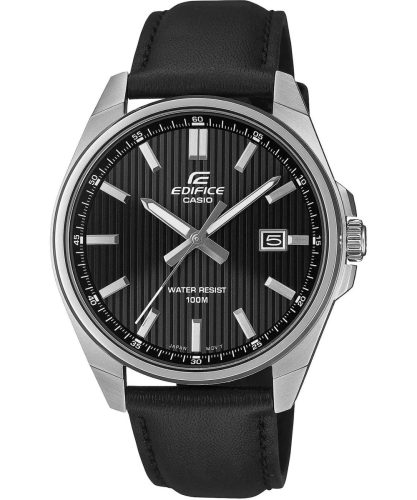 A Casio EDIFICE EFV-150L-1AVUEF egy klasszikus férfi karóra, amely ötvözi az eleganciát és a funkcionalitást. Pontos kvarcmozgásának köszönhetően minden körülmények között megbízható időmérést biztosít. Az ásványi üveg és a rozsdamentes acél garantálja a tartósságot és a karcállóságot. Az ezüst boríték kontrasztban áll a fekete számlappal, így harmonikus megjelenést kölcsönöz. A fekete bőrszíj tökéletesen illeszkedik az óra többi részéhez, eleganciát és stílust adva hozzá. Ezenkívül a számlap textúrája egyedi megjelenést kölcsönöz az órának.