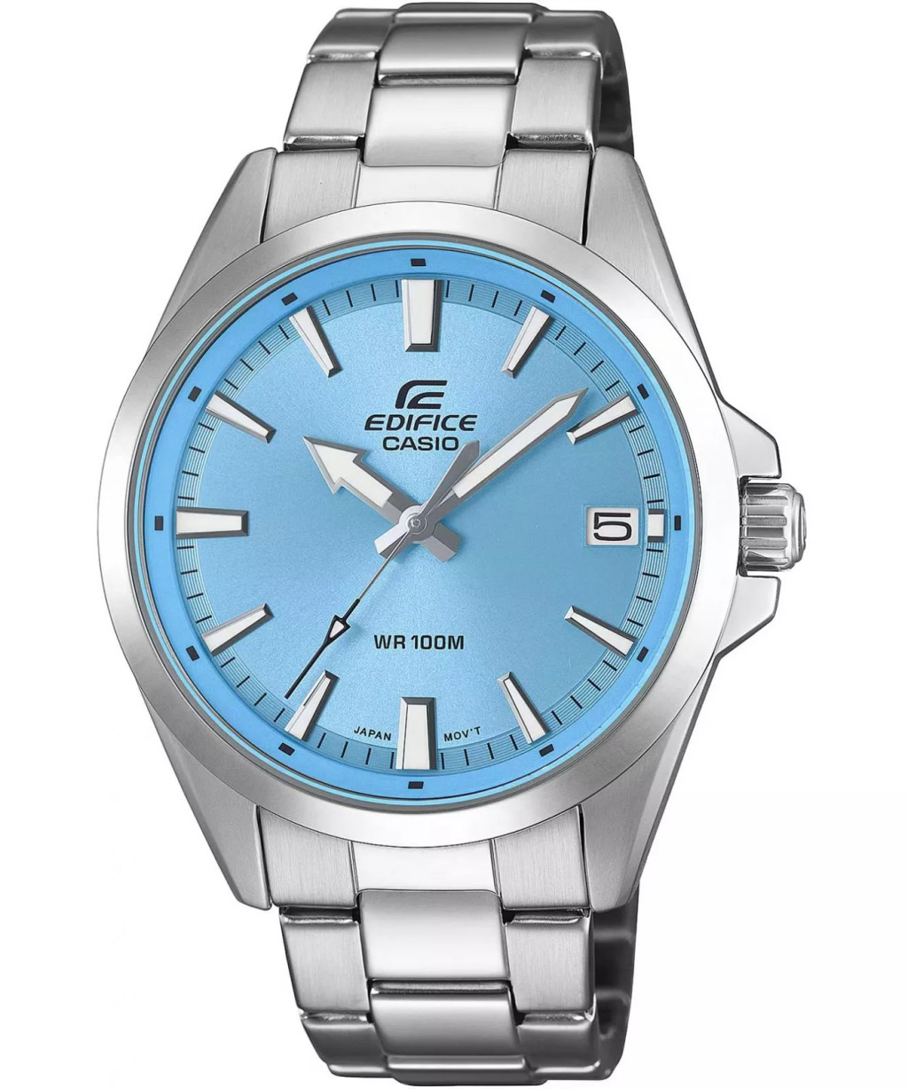 A Casio EDIFICE Momentum EFV-100D-2BVUEF egy olyan férfi karóra, amely a sportos jelleget a klasszikus dizájnnal ötvözi. Az ezüstszínű rozsdamentes acél borítás és karperec szilárd és stílusos kialakítást eredményez, amely tökéletesen illeszkedik a mélykék számlaphoz. Az órát egy precíz japán CASIO 5507 kvarcmű hajtja, amely garantálja a megbízható működést. A számlapot ásványi üveg védi, a neobrit bevonatú mutatók pedig lehetővé teszik az idő könnyű leolvasását sötétben is. A 100 méterig tartó vízállóságnak köszönhetően ez a modell készen áll arra, hogy megfeleljen a mindennapi használat kihívásainak, miközben elegáns megjelenését is megőrzi.