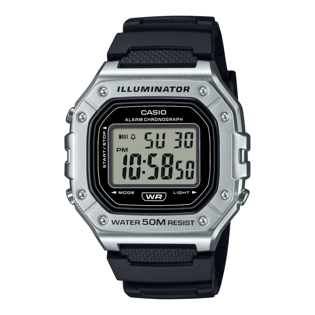 Praktikus funkcionalitás és merész kijelző találkozik a sportos digitális dizájnban. A W-218H 7 éves akkumulátorral van felszerelve, 50 méteres vízállósággal rendelkezik, a LED-es világítás pedig azt jelenti, hogy sötétben is mindig tudni fogja, mennyi az idő.