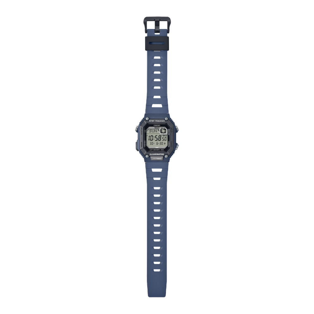 Egyszerű dizájn és funkcionalitás, amely még kényelmesebbé teszi a mindennapi életet. Csúsztasson bele egy tiszta, kompakt digitális órába Bluetooth® párosítással – ideális társ, akár napi ügyintézés, sportolás vagy wellness munkája során. A WS-B1000 1/100 másodperces stopperrel büszkélkedhet 200 körös memóriával, valamint lépéskövetővel, amely segít a napi fitnesz kezelésében. A beépített gyorsulásmérő érzékeli a test mozgását és automatikusan számolja a lépéseket. Amellett, hogy az LCD kijelzőn megjeleníti az aznap megtett lépések számát, az óra egy grafikát is mutat, amely a céljainak elért előrehaladását mutatja. Ez az óra biztosan támogatja az aktív életmódot. Az okostelefon Bluetooth®-on keresztüli párosítása automatikus időkorrekciót biztosít, és megkönnyíti az ébresztés, a világidő és egyéb funkciók konfigurálását az alkalmazásból. Az órán mért lépésszámlálások és stopperórák átvihetők a telefonra és megtekinthetők rajta. Használja ezeket a naplóadatokat a napi testmozgás irányításához és az egészségi állapot kezeléséhez. A vékony, kompakt kialakítás az elülső gombbal megkönnyíti az adatkezelést tevékenységek közben, a perforált uretán szalag pedig légáteresztőt, kényelmes illeszkedést és nyugodt viseletet biztosít. Az akár 10 bar vízállóság megszabadít az aggodalomtól, még hirtelen esőben is.