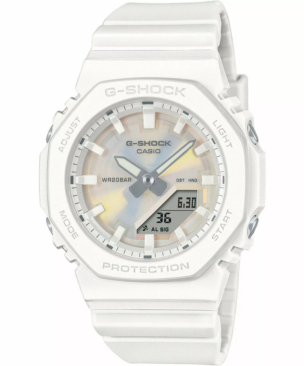 Casio GMA-P2100PC-7AER női karóra a minimalista dizájn és a legendás tartósság találkozása. Letisztult, teljesen fehér megjelenése modern, mégis időtálló stílust képvisel, így könnyedén illeszkedik a hétköznapi és sportos outfitekhez is.