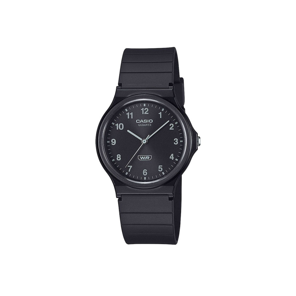 A Casio MQ-24B-1BEF egy minimalista, klasszikus stílusú, analóg karóra a Casio Collection sorozatából. Unisex kialakítása révén férfiak és nők számára egyaránt ideális, a funkcionalitást pedig az egyszerű, letisztult dizájnnal ötvözi, így tökéletes választás a mindennapi viseletre.
