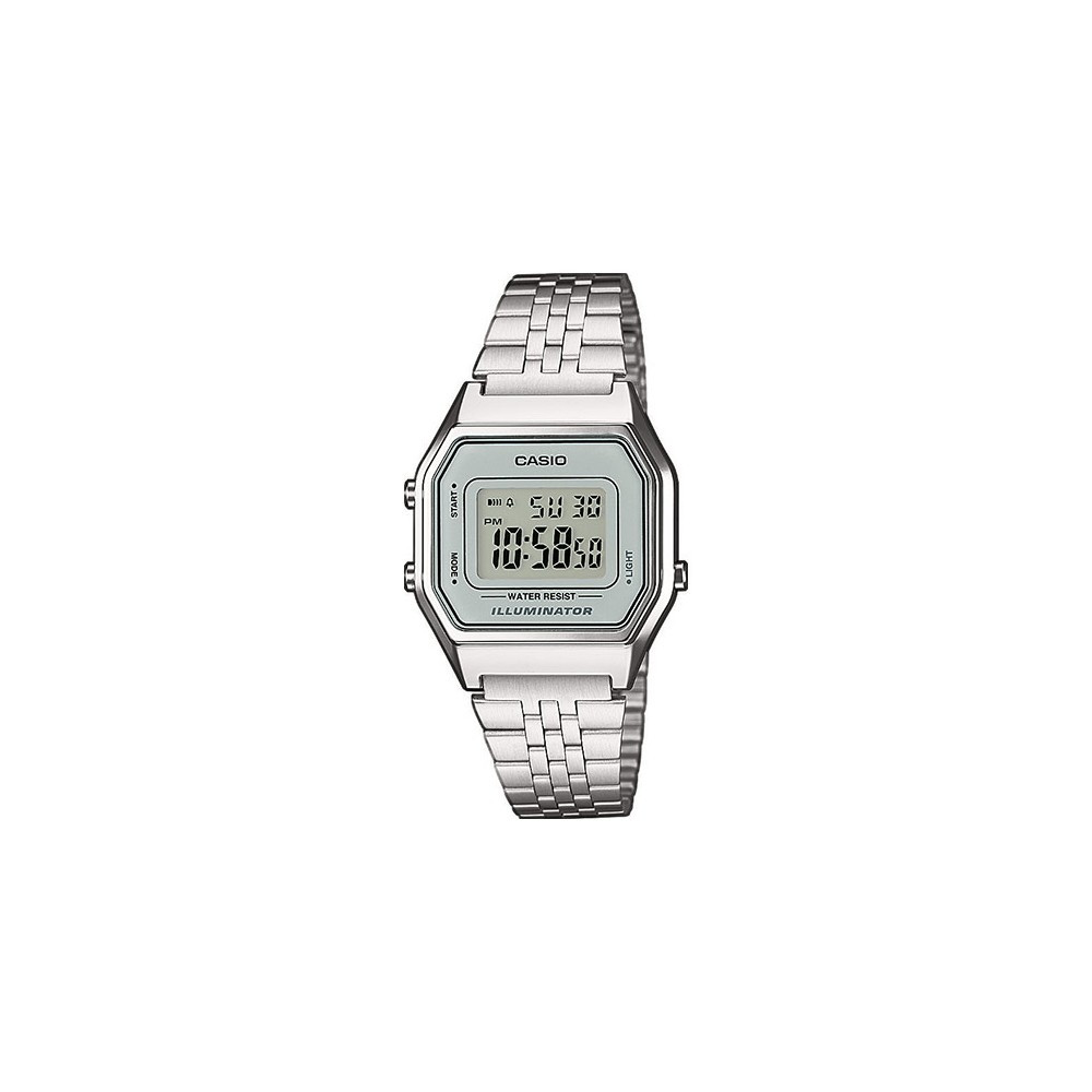 A Casio LA680WEA‑7EF Retro / Vintage karóra egy letisztult, könnyen hordható digitális időmérő, ami a Casio klasszikus retró dizájnját hozza vissza modern funkciókkal: a digitális kijelzőn egyszerre láthatod az időt, a dátumot és a hét napjait, és akár 12 vagy 24 órás formátumra is válthatsz. A stopper, ébresztő és öröknaptár hasznos társ a mindennapokban, a háttérvilágítás pedig gondoskodik róla, hogy sötétben is könnyen olvashasd az adatokat. A japán kvarc szerkezet pontos működést garantál, az ezüstszínű rozsdamentes acél szíj pedig elegáns, mégis visszafogott megjelenést ad ennek a Casio vintage női karórának. A cseppálló vízállóság miatt a mindennapi fröccsenések sem jelentenek problémát, így ez az óra ideális választás hétköznapi viseletre vagy ajándéknak is.