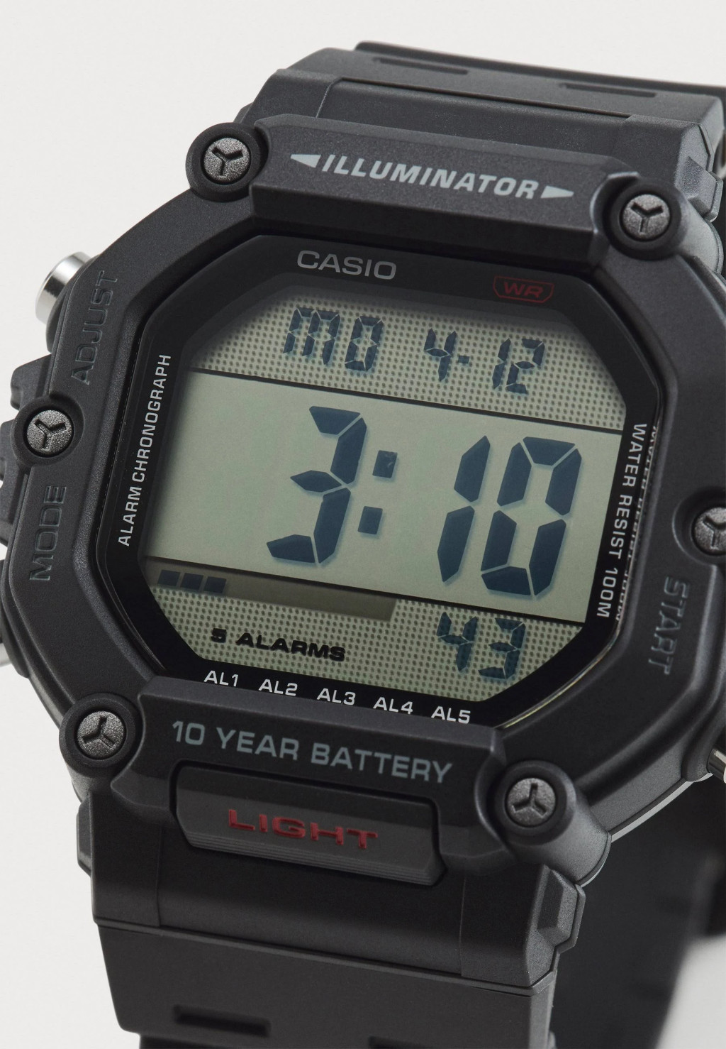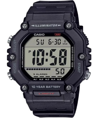 A Casio AE-1600H-1AVEF férfi karóra a Timeless Collection sorozatból egy modern modell, amely a funkcionalitást vonzó dizájnnal ötvözi. Fekete színű, műanyagból készült borítással rendelkezik, ami könnyűvé és kényelmessé teszi viselését. Az óra számlapja egy kijelző, amelyet hessalit üveg borít, ami megvédi a sérülésektől. Az óra borítékszélessége 50 mm, ami masszív megjelenést kölcsönöz neki. A fekete színű gumiszíj tökéletesen harmonizál az általános dizájnnal. Az óra 100 méterig tartó vízállósággal rendelkezik, így úszásra is alkalmas.