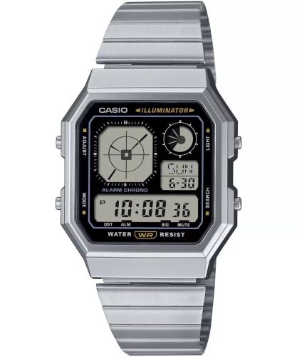 A Casio A130WE-1AEF óra a Vintage Collection sorozatból egy stílusos kiegészítő, amely ötvözi a modernitást a klasszikus dizájnnal. Kvarcművel rendelkezik, amely praktikusságát biztosítja. Az óra burkolata ezüstszínű rozsdamentes acélból készült, és 34 mm széles, ami finom, mégis jellegzetes karaktert kölcsönöz neki. A fekete számlapot hessalit üveg borítja, amely megvédi a sérülésektől. A szintén ezüstszínű rozsdamentes acélból készült karperec tökéletesen illeszkedik a teljes dizájnhoz, így kényelmes viseletet biztosít. Az óra 30 méteres vízállósággal rendelkezik, így ellenáll a kisebb fröccsenéseknek. Ideális választás azok számára, akik értékelik a funkcionalitás és a divatos dizájn kombinációját.