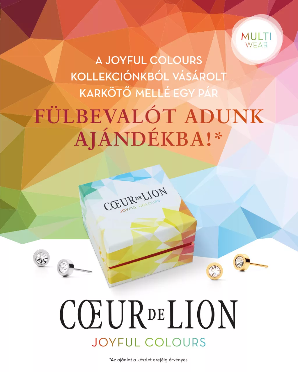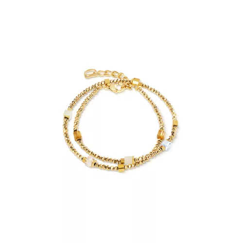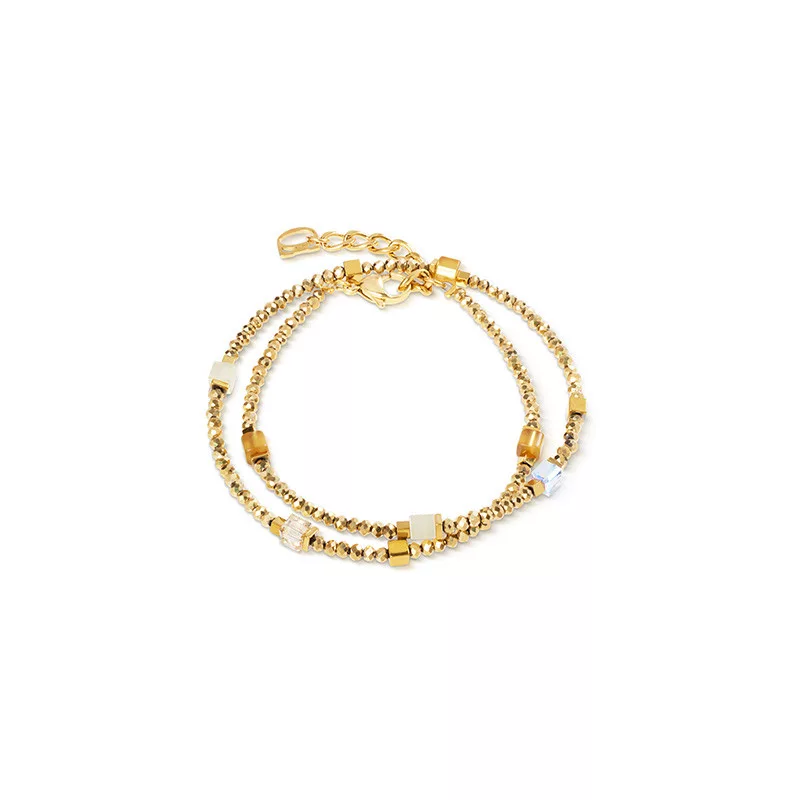 A Coeur de Lion Joyful kollekció tiszta arany tónusú modellje a klasszikus fényűzést hozza el a modern, építészeti design világába. Ez az ékszer az arany szín melegségére és az ikonikus GEOCUBE® formák precizitására épít. A különböző textúrájú anyagok – a csillogó Swarovski® kristályoktól a selymes fényű tigrisszemig – mind az arany árnyalataiban játszanak, így teremtve egy lenyűgözően egységes, mégis izgalmas látványt. Most különleges ajánlatunk keretében a karkötő mellé egy stílusban tökéletesen passzoló fülbevalót adunk ajándékba!