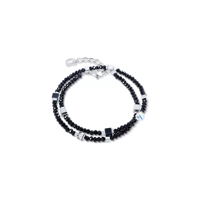 Coeur de Lion Joyful – Fekete és Ezüst Dupla Soros Karkötő + AJÁNDÉK Fülbevaló