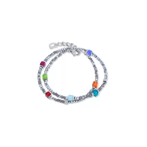 Coeur de Lion Joyful – Multikolor és Ezüst Dupla Soros Karkötő + AJÁNDÉK Fülbevaló