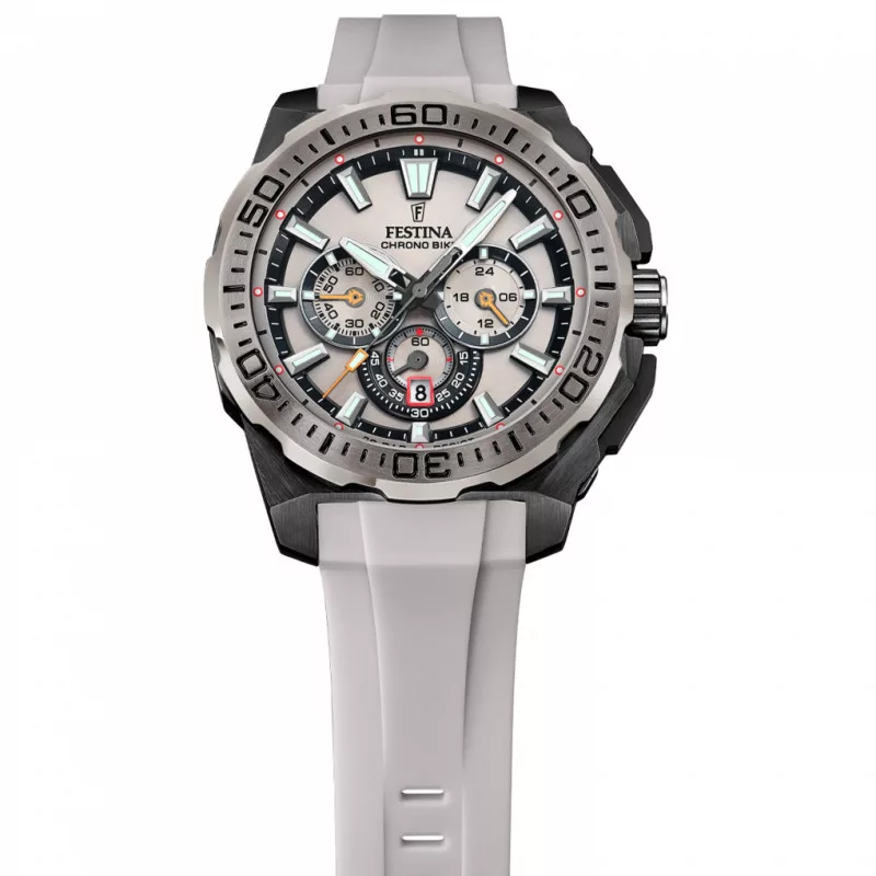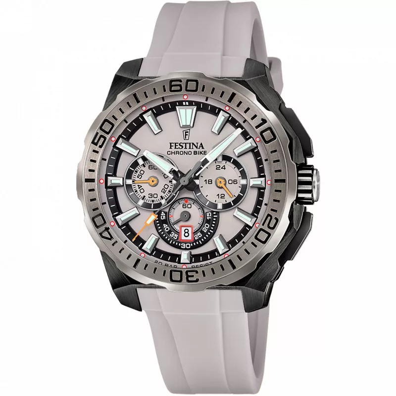A Festina Chrono Bike férfi karóra F20726-1 a kalandvágyó lelkeknek készült, akik nem érik be kevesebbel. A megbízható Japán kvarc szerkezet mindig pontos időt biztosít, a masszív kristály üveg pedig bírja a mindennapok és a kihívások terheit is. A fekete nemesacél tok markáns megjelenést ad, amit a homokszínű szilikon szíj kényelmes viselete tesz teljessé. A 200 m vízállóság révén búvárkodásra és intenzív vízi sportokra is alkalmas. Az óra eredeti gyári dobozban érkezik, így egyaránt tökéletes választás saját kalandjaidhoz vagy egy igazán különleges ajándéknak.