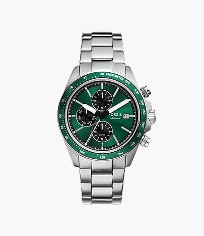 A Fossil FS6127 (Autocross) egy sportosan elegáns férfi karóra, amely a klasszikus acél megjelenést egy karakteres zöld számlappal dobja fel. Ez az a típus, ami elsőre letisztult, de van benne egy kis csavar.