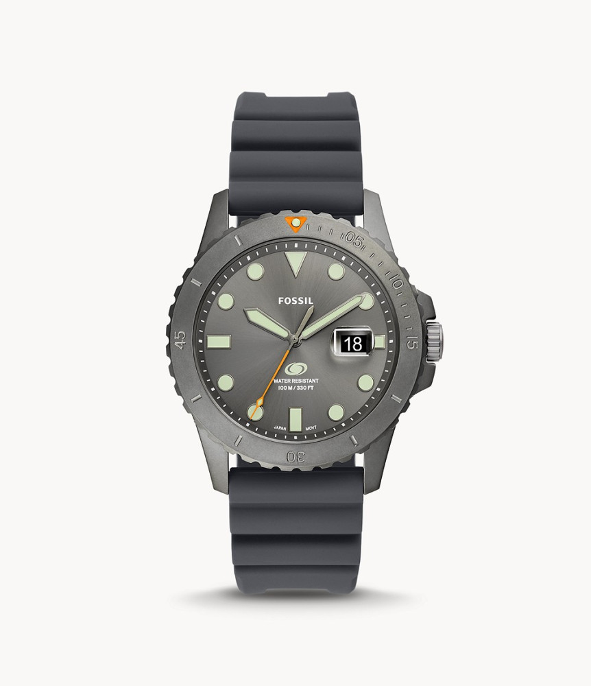 Szándékos dizájnrészletek határozzák meg idős sportóra kollekciónkat, a Fossil Blue-t. Ez a sokoldalú óra úszásra kész füstszilikon szíjjal, szürke, geometrikus mutatókkal ellátott napsugaras számlappal, 100 méteres vízállósággal, egy irányban forgó felsőgyűrűvel és egy nagyító kristállyal rendelkezik a dátumon. Fossil blue férfi karóra FS5994