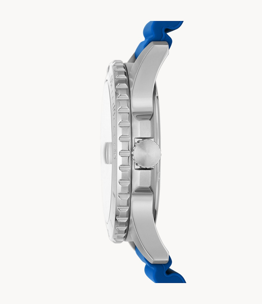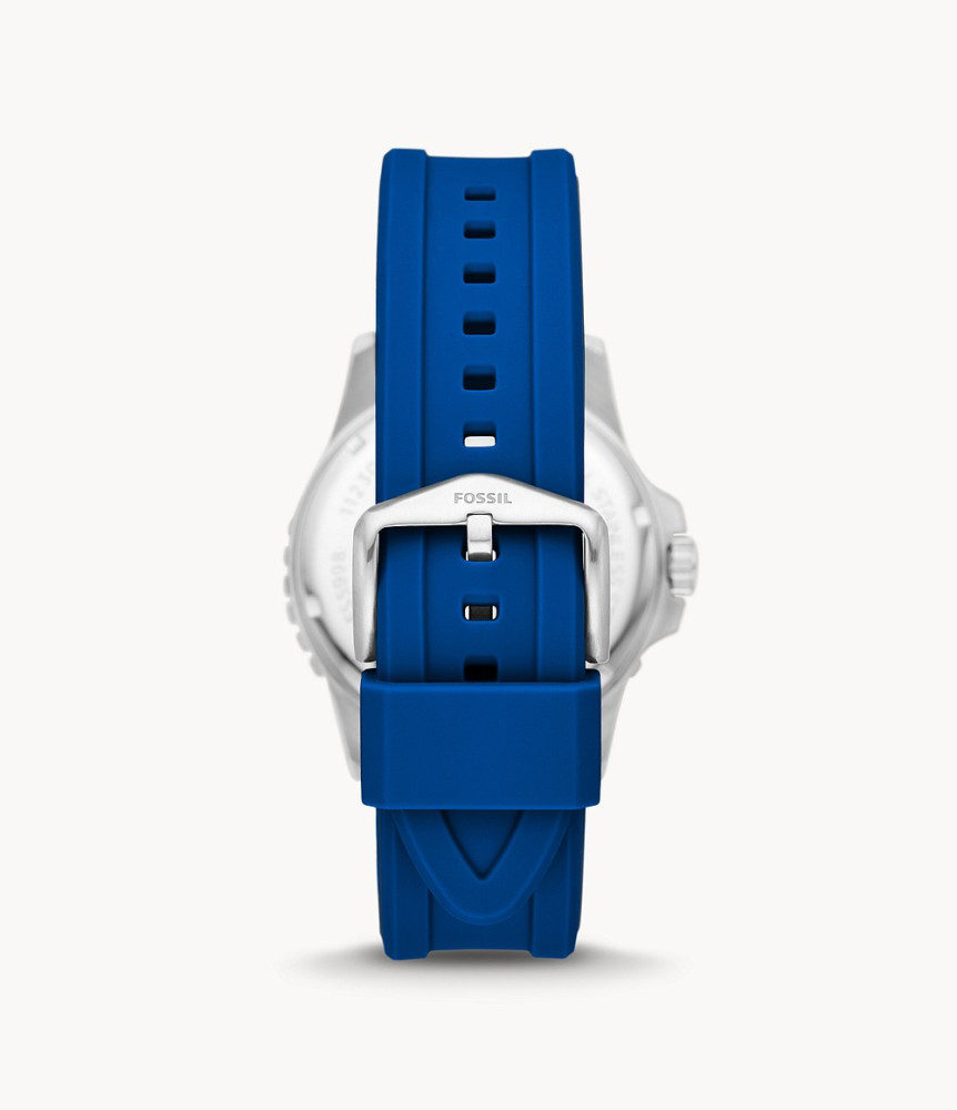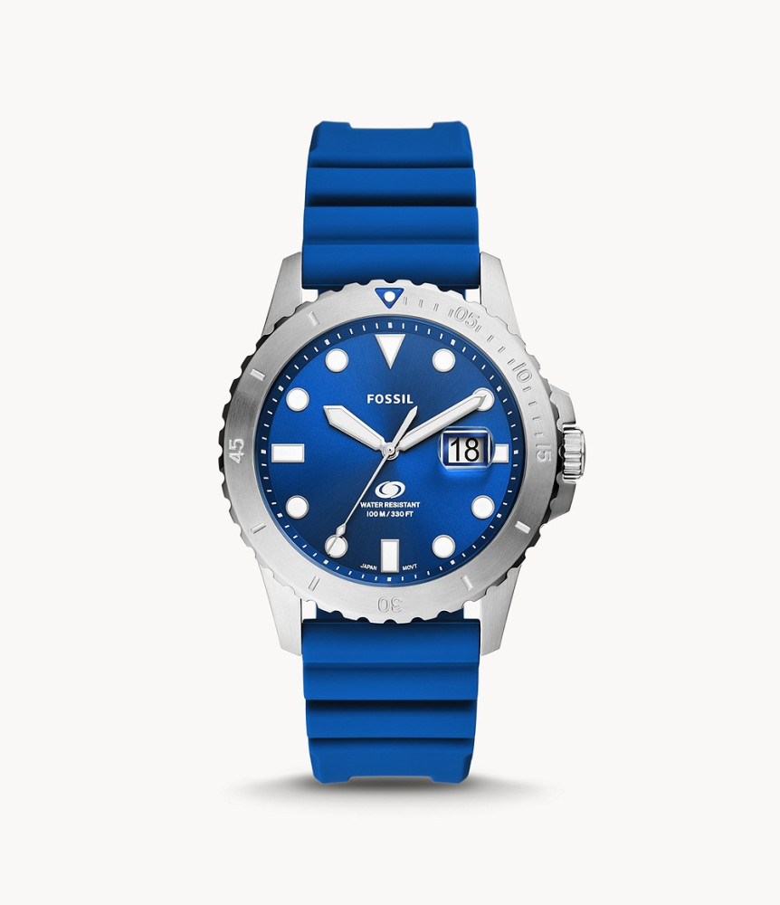 Szándékos dizájnrészletek határozzák meg idős sportóra kollekciónkat, a Fossil Blue-t. Ez a sokoldalú óra úszásra kész kék szilikon szíjjal, geometriai mutatókkal ellátott napsugaras számlappal, 100 méteres vízállósággal, egyirányban forgó felsőgyűrűvel és nagyító kristállyal rendelkezik a dátumon. Fossil Blue férfi karóra FS5998