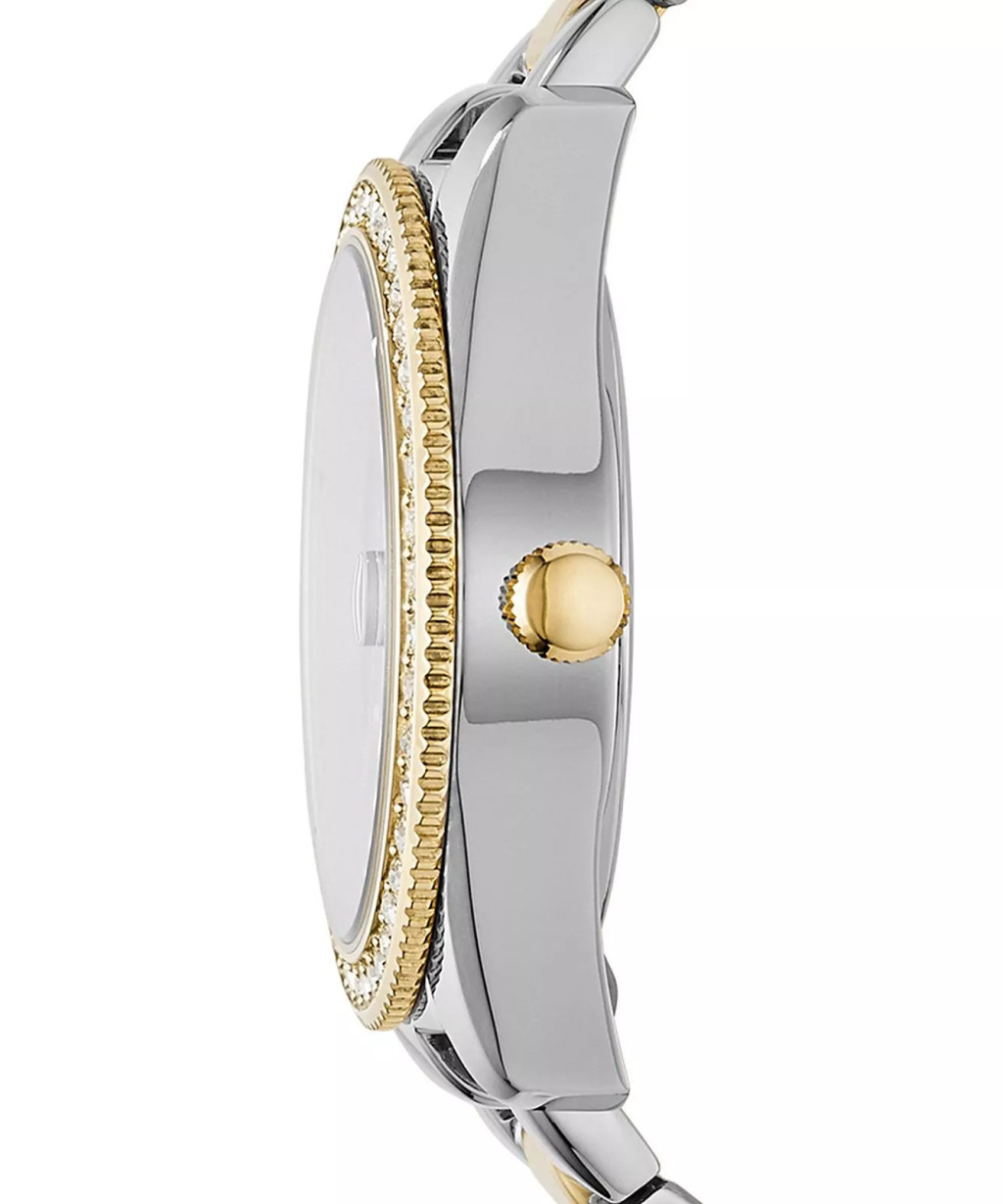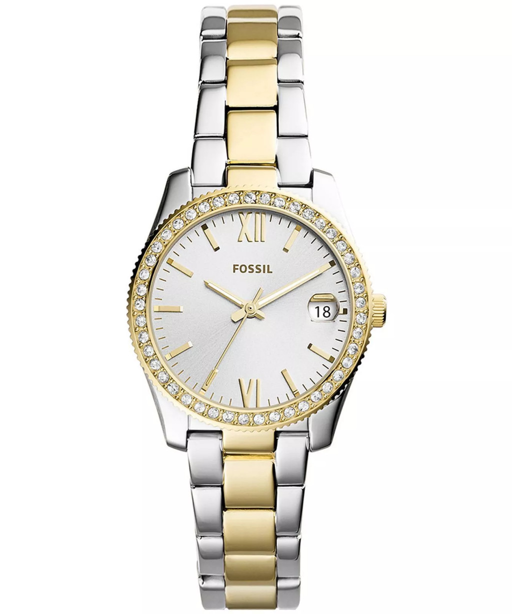 A Fossil watch egy amerikai márka, melynek árucikkjei, a prémium minőségű időmérő technológia és az elegancia tökéletes kombinációját képviselik. Az eredeti Fossil márka szabadalommal van védve. A karóráit különböző formákat hozó ötletes kreativitás jellemzi. Megbízahtó kvarc szerkezettel nem hagy cserben. Vízállósága 50 méter. Az eüst és arany kombinációja egyedi megjelenést kölcsönöz. Tökéletes választás a mindennapokra. Fossil Scarlette női karóra típusa ES4319