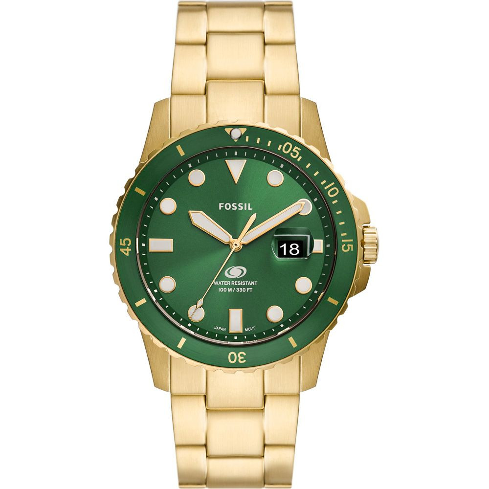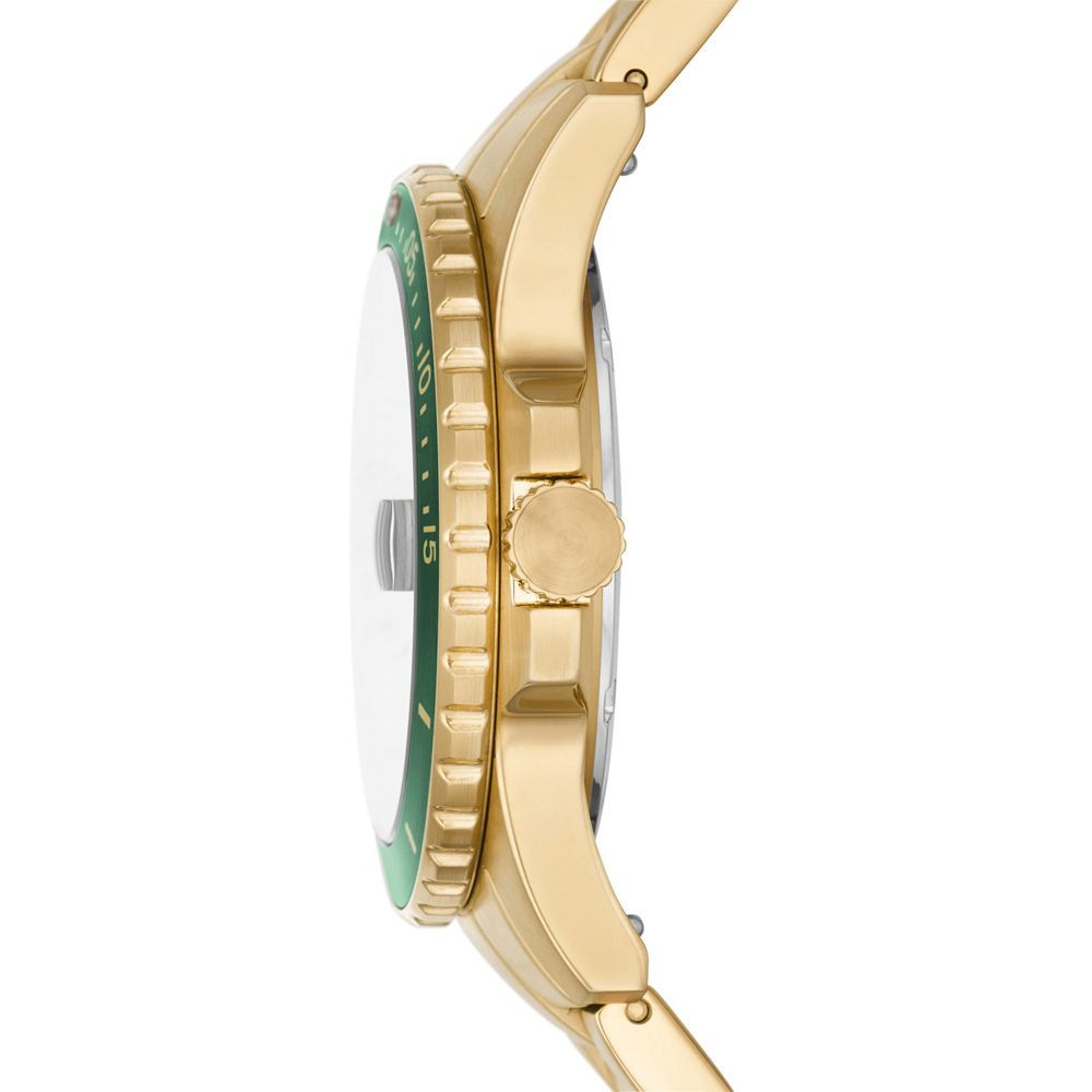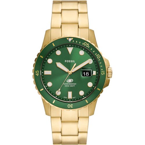 A képen látható Fossil férfi karóra tok anyaga nemesacél, színe arany, a szíj anyaga nemesacél és a színe arany. Az óratok átmérője 42mm, alakja kerek. A karóra üvege kristály (nehezen karcolható), szerkezete kvarc és vízállósága 10 atm (100m) (úszásra is alkalmas). Az óra új állapotban, gyári dobozával együtt kerül csomagolásra. Fossil Férfi Karóra FS5950