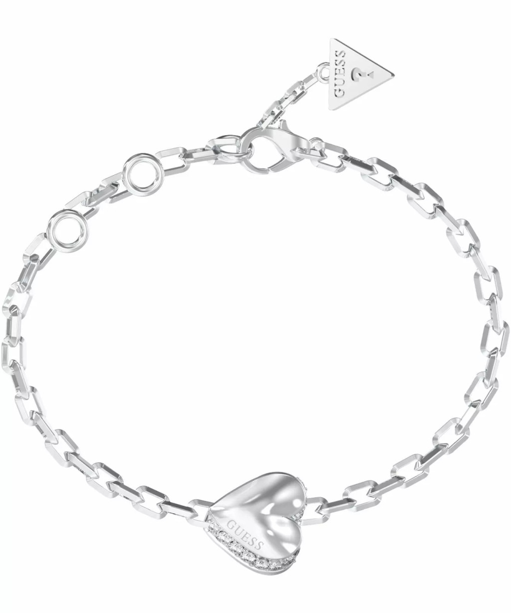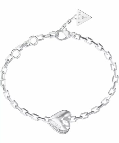 A Guess By Your Side női karkötő elegáns és romantikus kiegészítő, amely finom megjelenésével tökéletes választás a mindennapokra vagy különleges alkalmakra. A karkötő központi eleme a szív motívum, amelyet csillogó kristályok díszítenek, így diszkrét, mégis látványos ragyogást kölcsönöz a viselőjének.