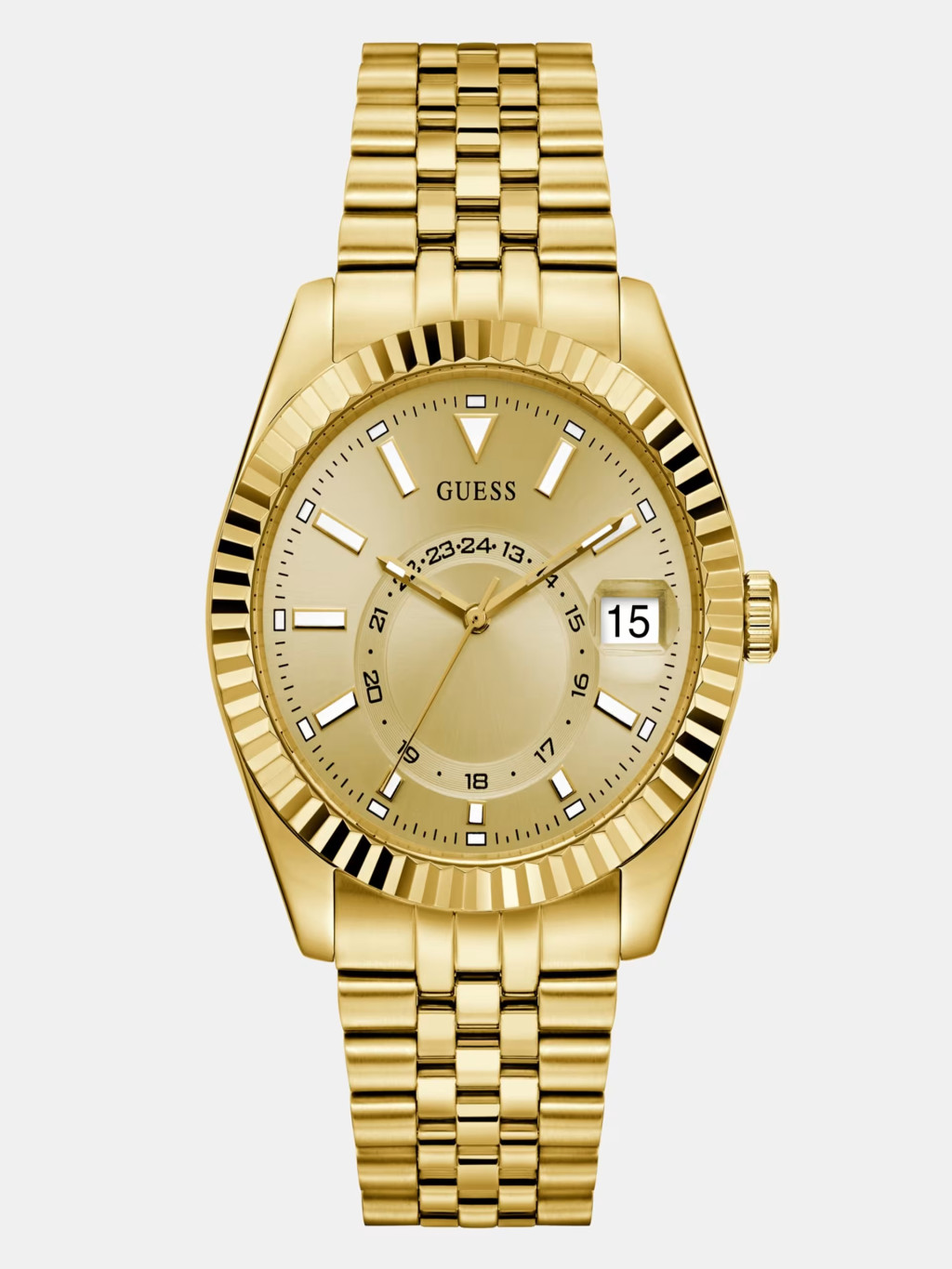 A Guess GW0977G2 egy markáns, arany színű férfi karóra, amely azoknak készült, akik szeretik, ha egy kiegészítőnek súlya és jelenléte van. A 42 mm-es tokátmérő modern, trendi méret, jól mutat átlagos és nagyobb csuklón is.