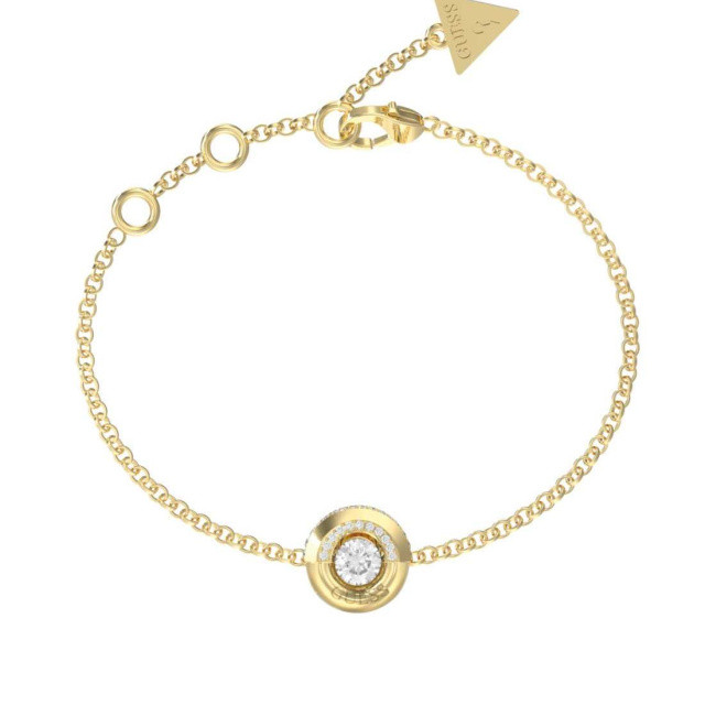 A Guess Majorelle kollekció női karkötője elegáns és nőies kiegészítő, amely finom csillogást kölcsönöz minden megjelenésnek. A sárga arany színű, fényes nemesacél karkötőt csillogó cirkónia kövek díszítik, így tökéletes választás mindennapi viselethez vagy elegáns alkalmakra.