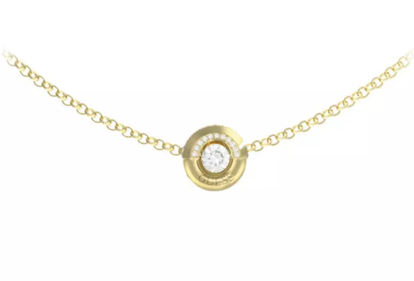 Guess JUBN05377JWYGT/U női nyaklánc egy elegáns, arany színű darab, amely a márka ékszerkollekciójából származik. Rozsdamentes acélból készült, így tartós és hosszú életű, miközben könnyű, mindössze 6 gramm súlyú.