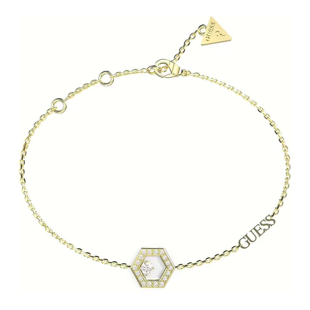 A Guess JUBB04650JWYGL női karkötő elegáns megjelenésével és letisztult vonalaival tökéletes választás a mindennapokra és különleges alkalmakra is. A sárga arany színű, rozsdamentes acél alap időtálló és kényelmes viselet, miközben nőies, finoman csillogó megjelenést ad a csuklón.