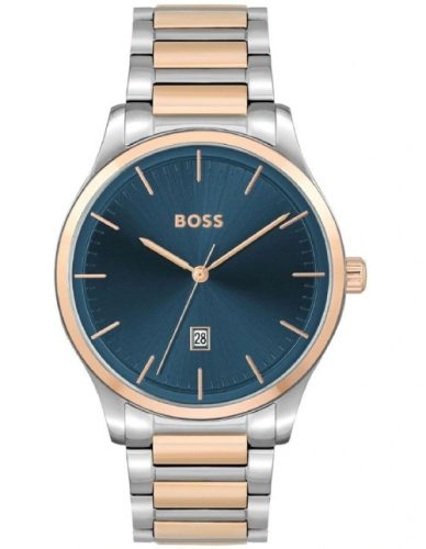 Hugo Boss férfi karóra típusa 1513978.  BOSS Reason egy tiszta és minimális háromkezes óra dátum funkcióval, amely megtestesíti magabiztosságát. A lecsökkentett kivitelben napsugárzó számlap található polírozott indexekkel, 12 órakor a BOSS logóval. A rozsdamentes acélból készült tok klasszikus vagy kéttónusú csiszolt karkötővel van kombinálva.