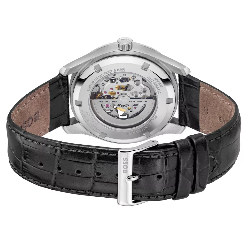 Tapasztalja meg a Hugo Boss fekete borjúbőr mechanikus-automata férfi karóra pontosságát és tartósságát - 1514234. Mech-Automatic szerkezetével, 41 mm-es házátmérőjével és 13,5 mm-es házvastagságával ez az óra tartósra készült. A rozsdamentes acél házbevonat és az ásványi kristály anyag kivételes védelmet nyújt, míg az elegáns fekete számlap és a valódi borjúbőrből készült szíj luxust és kifinomultságot áraszt. Az 5 atm vízállósági besorolásával és a biztonságos nyelves csattal ez az óra bármilyen kalandra készen áll. Emelje fel stílusát, és tegyen nyilatkozatot ezzel a kivételes órával.