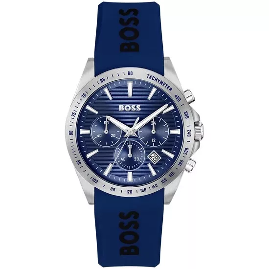 A barázdás szerkezetű számlap élénk, vízi színekben biztosítja, hogy a BOSS Watches Strike Chrono tökéletes kiegészítője legyen bármilyen nyári megjelenéshez. Ez a dátum funkcióval rendelkező kronográf óra számos sportos részlettel büszkélkedhet.