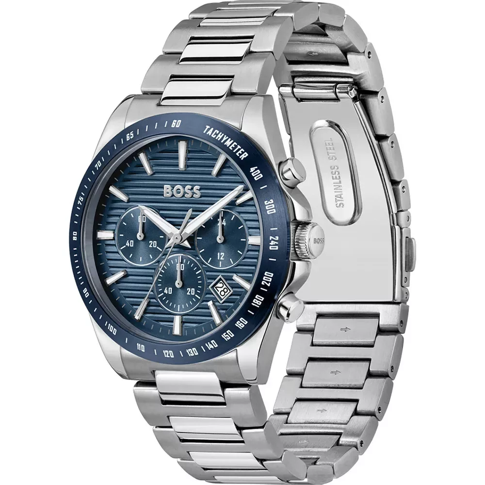 Hugo Boss Strike Chrono karóra a stílusos férfiaknak készült, akik szeretik a modern dizájnt és a funkcionalitást egyaránt. A kék számlap kiemeli az analóg kijelzést, a stopper, a tachymeter és a 24 órás kijelző pedig a precíz időmérést szolgálja. A dátum kijelzés segít, hogy mindig naprakész legyen.