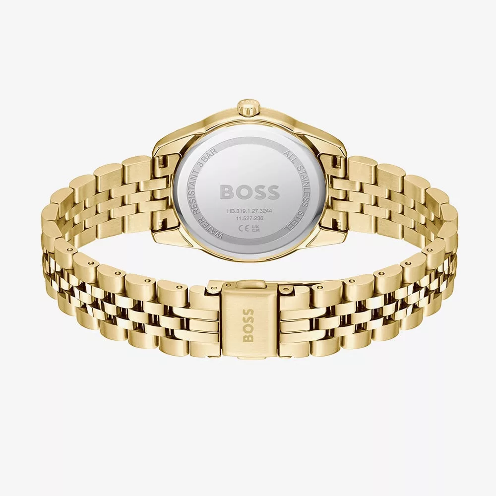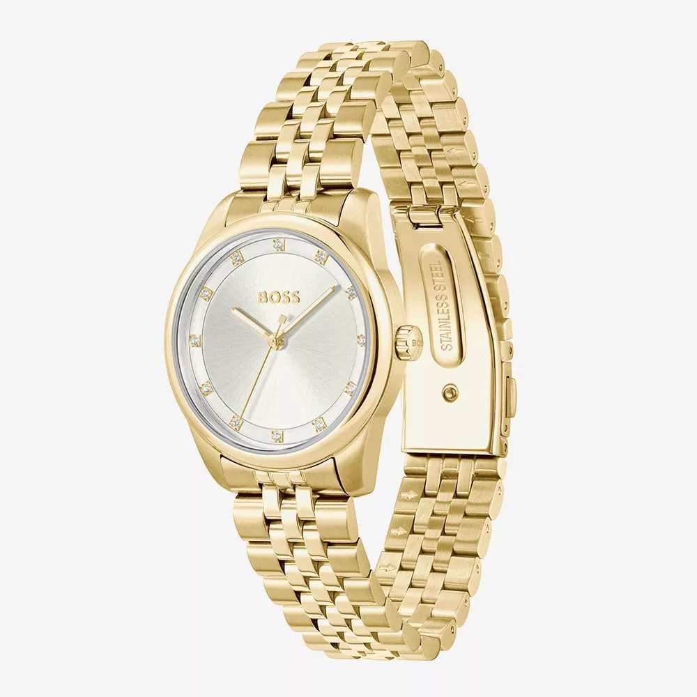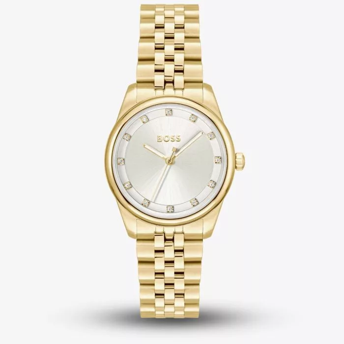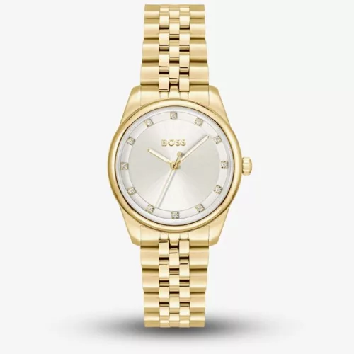 Ez a Hugo Boss karóra a kifinomult női stílus elengedhetetlen része. A pontos kvarc szerkezetnek hála mindig megbízható társ, az edzett kristály üveg pedig gondoskodik a számlap védelméről. Az arany színű nemesacél tok és szíj klasszikus kombinációja eleganciát sugároz. 30 m vízállósága a mindennapi viselet során is praktikus védelmet nyújt. Hugo Boss díszdobozban kapható, így ajándéknak is tökéletes választás. Az üzleti környezetben dolgozók számára elegáns és professzionális megjelenést biztosít. Hugo Boss ni karóra 1502810